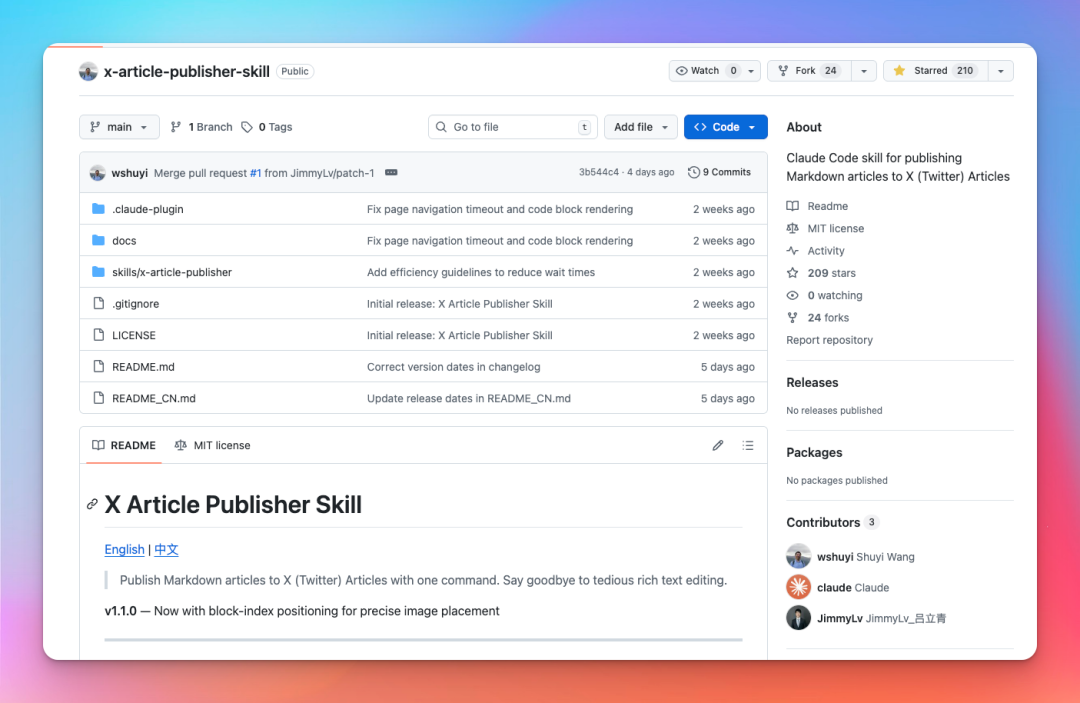 地址:https://github.com/wshuyi/x-article-publisher-skill